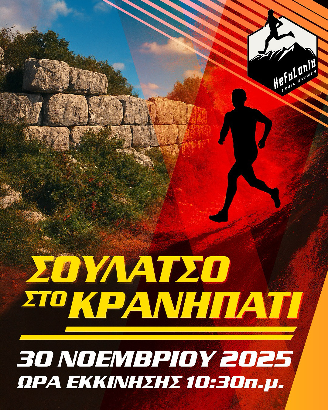 Ο σύλλογος Kefalonia Trail Events προκηρύσσει την διεξαγωγή του αγώνα ορεινού τρεξίματος «Σουλάτσο στο Κρανηπάτι», την Κυριακή 30 Νοεμβρίου 2025 και ώρα 10.30΄, που θα εκκινήσει από το καφέ Σουλάτσο στην παραλία Αργοστολίου.