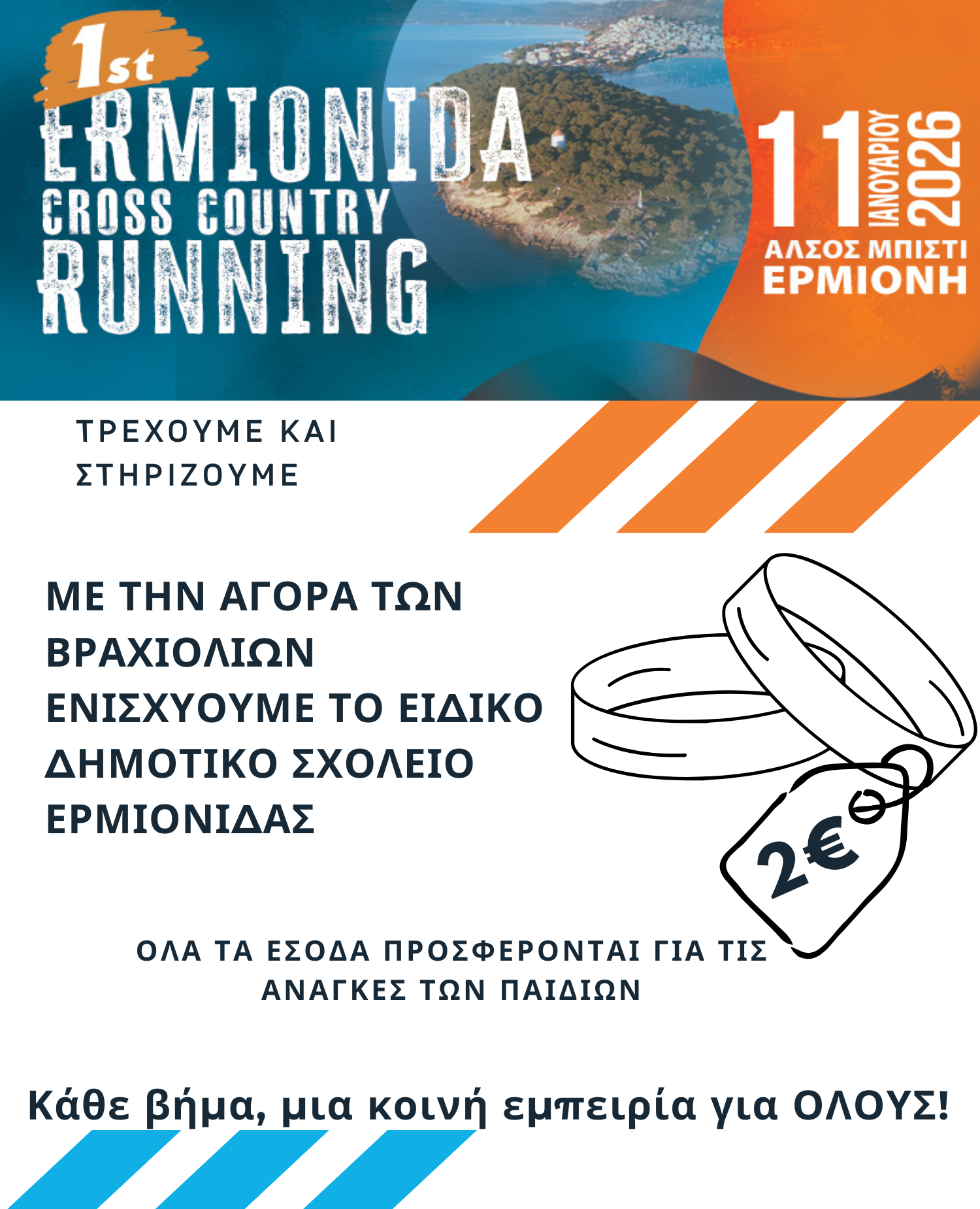 Στο πλαίσιο της διοργάνωσης, στηρίζουμε έμπρακτα το Ειδικό Δημοτικό Σχολείο Ερμιονίδας. Έχουν δημιουργηθεί ειδικά αναμνηστικά βραχιόλια σιλικόνης, τα έσοδα των οποίων θα διατεθούν εξ ολοκλήρου για την ενίσχυση των δράσεων του σχολείου.